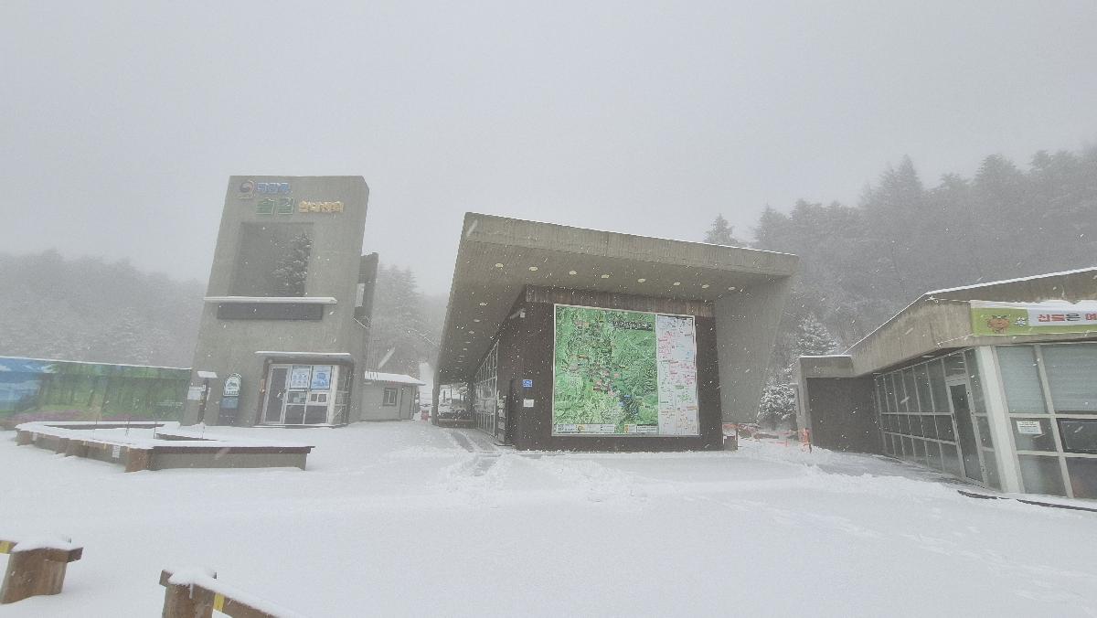 대관령숲길에 눈이 많이 오고 있습니다